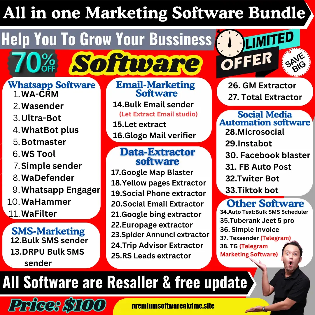 Get 35+ powerful tools for WhatsApp, SMS, Email, Data Extraction & Social Media Automation in one pack!